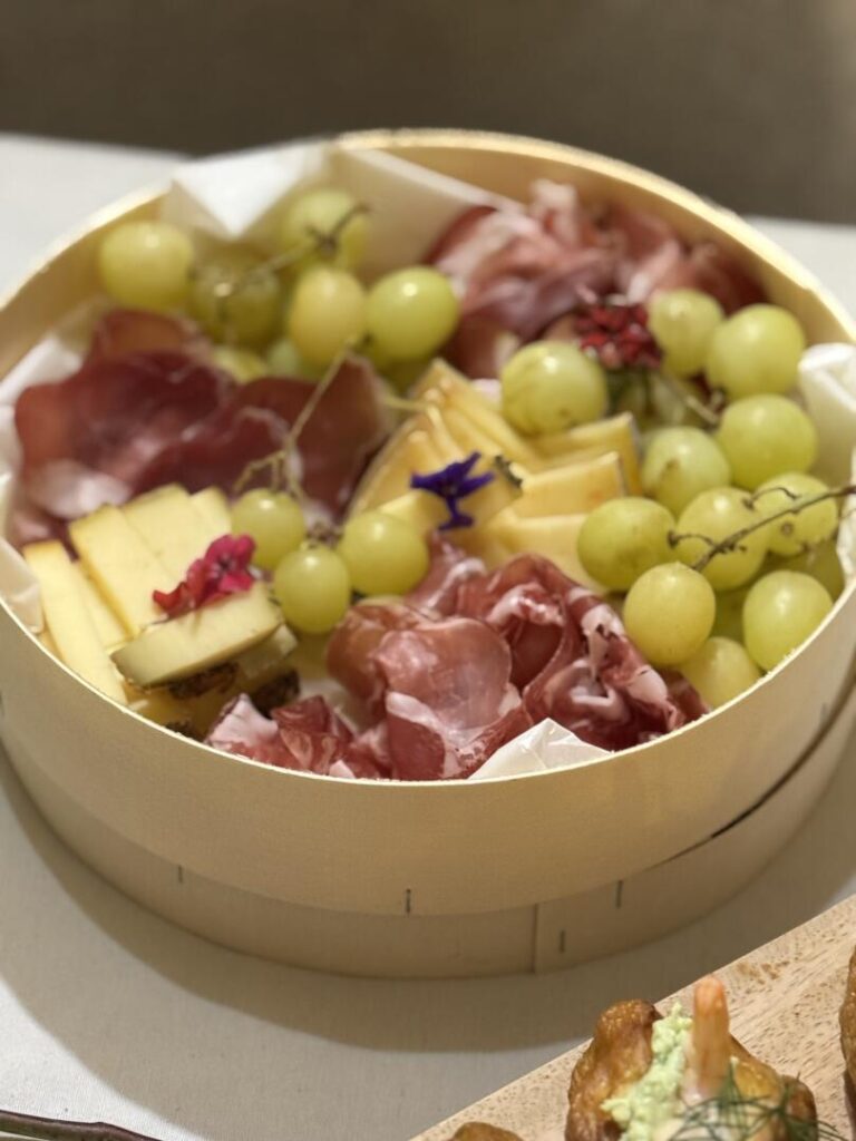 Dans un grazing food, vous trouverez souvent des plats composés de fromages délicats comme le chèvre frais, des charcuteries fines telles que le jambon cru, accompagnés de fruits frais et secs comme les raisins et les noix. Les verrines savoureuses, les canapés gourmands et les bouchées délicates telles que des mini-quiches au saumon fumé et fromage frais enrichissent l’expérience. Contrairement aux buffets classiques où les plats sont souvent servis en grandes quantités et nécessitent généralement que les convives se servent eux-mêmes en portions plus conséquentes, le grazing food invite à un parcours gustatif, où l’on picore un peu de tout au gré des envies, créant une expérience culinaire à la fois riche et décontractée.